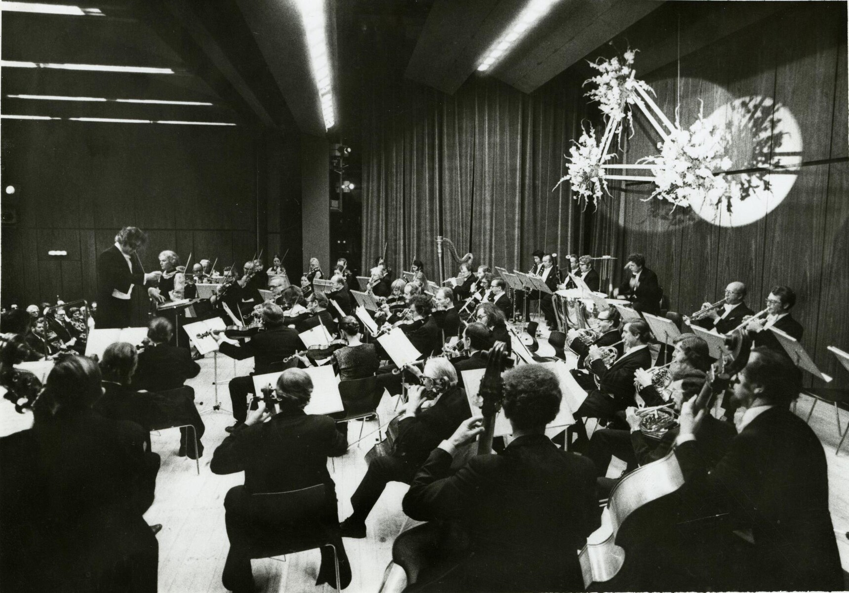 5 Stuttgarter Philharmoniker unter Leitung von Generalmusikdirektor Hans Zanotelli während des Eröffnungskonzerts am 5.12.1973