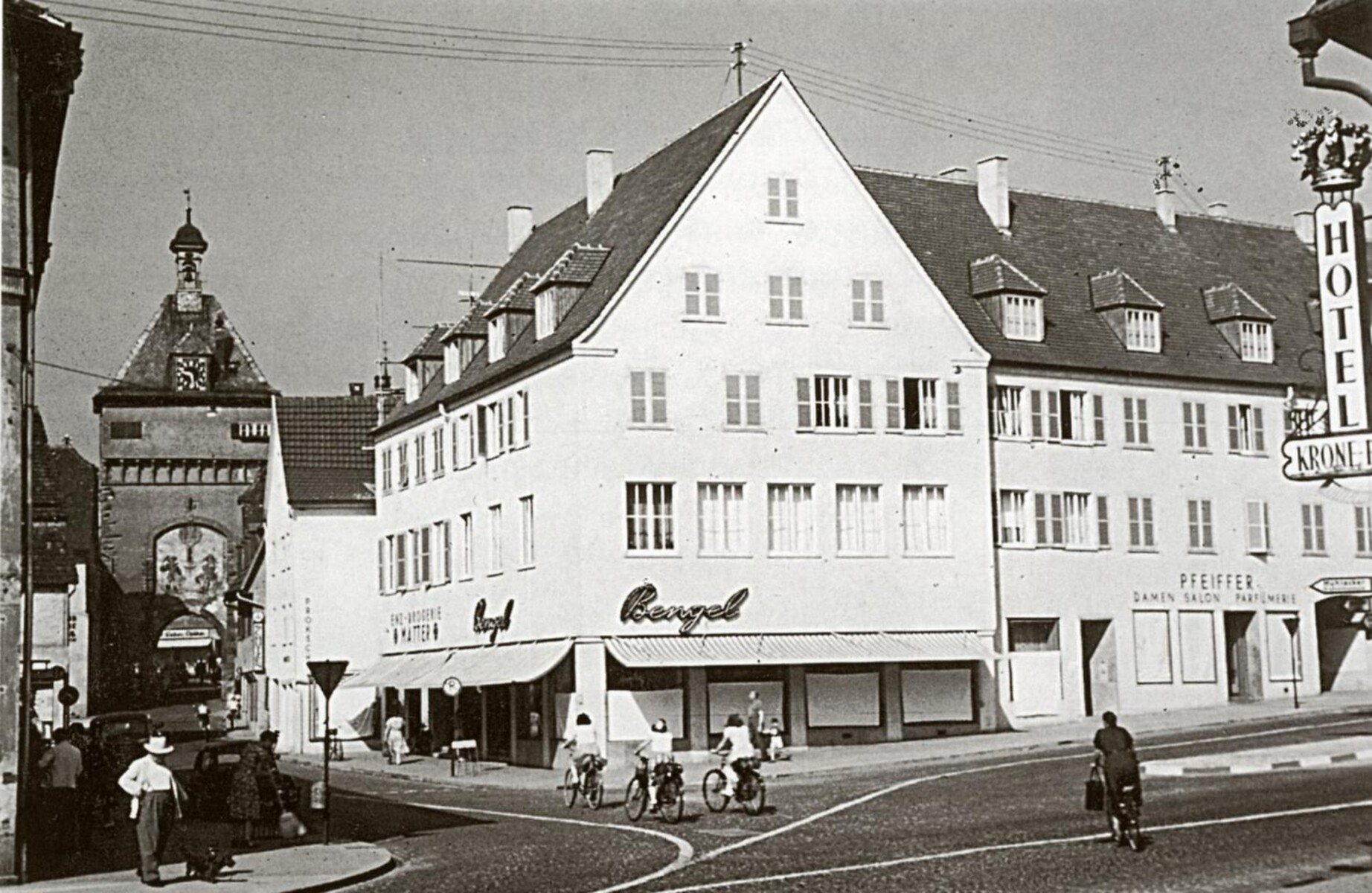 Foto 4: Das große Gebäude Bengel und der Friseurladen Pfeiffer-Wöhrle nach 1952