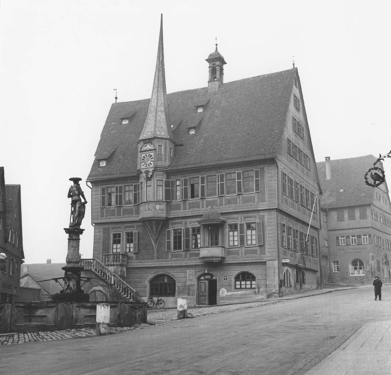 3: Ab 1926 war der Haupteingang auf der Ostseite, der Traufseite des Rathauses, 1938-1940 Otto Kienzle