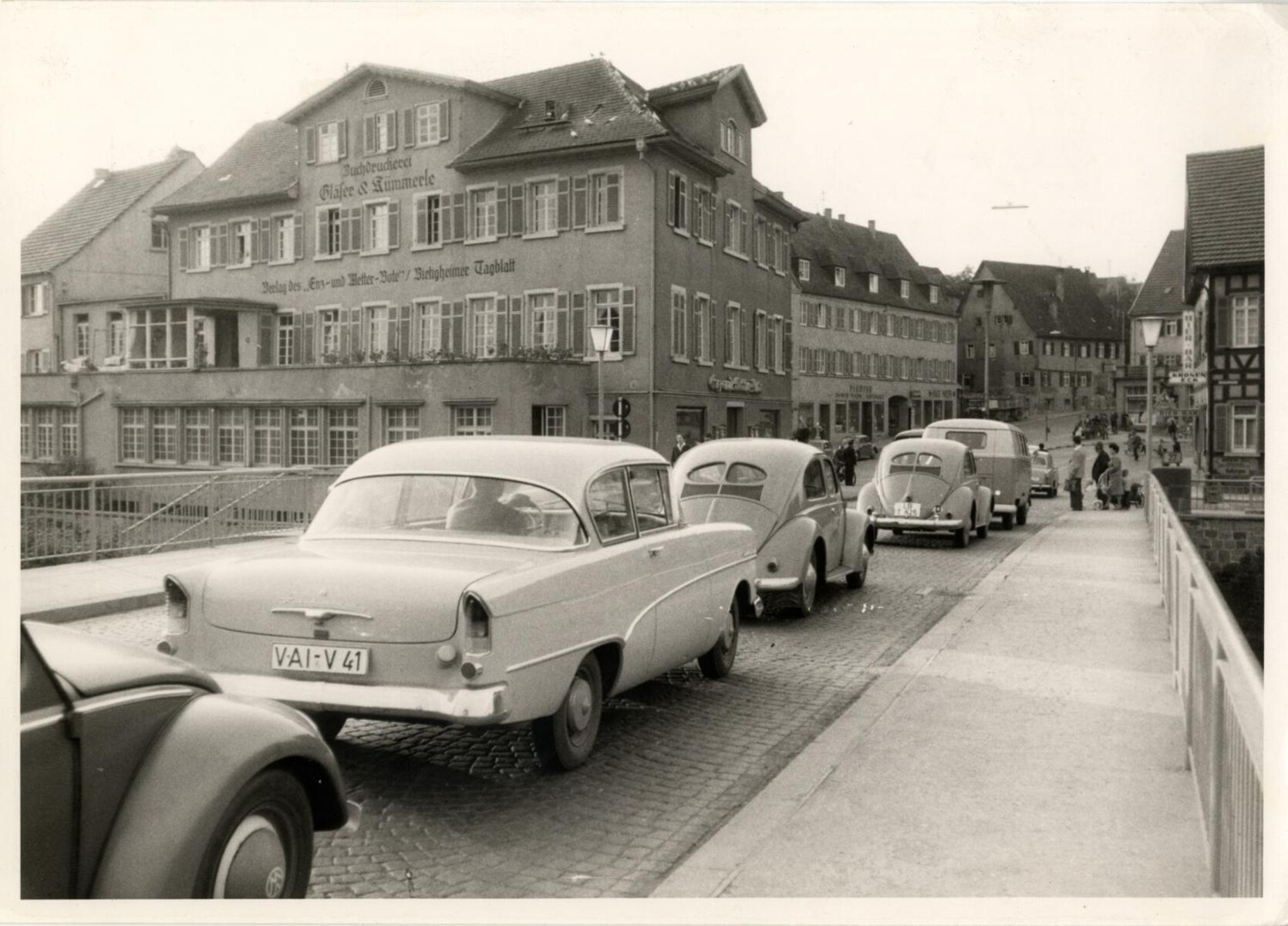 4 Straßenverkehr der B 27 auf der Enzbrücke 1960er, Fotograf Otto Kienzle
