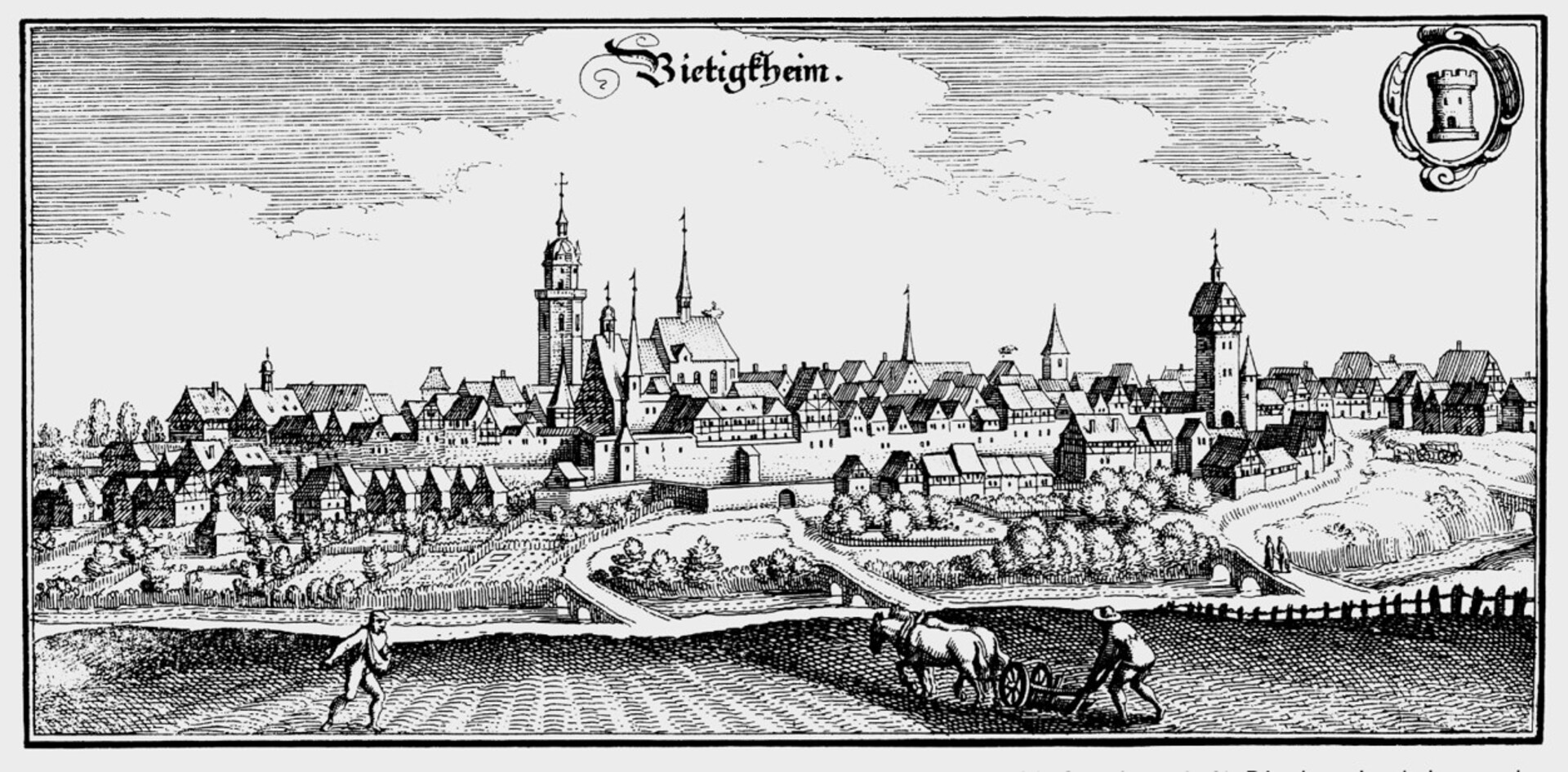4: Bietigheim 1643 von M. Merian: Topographia Sueviae