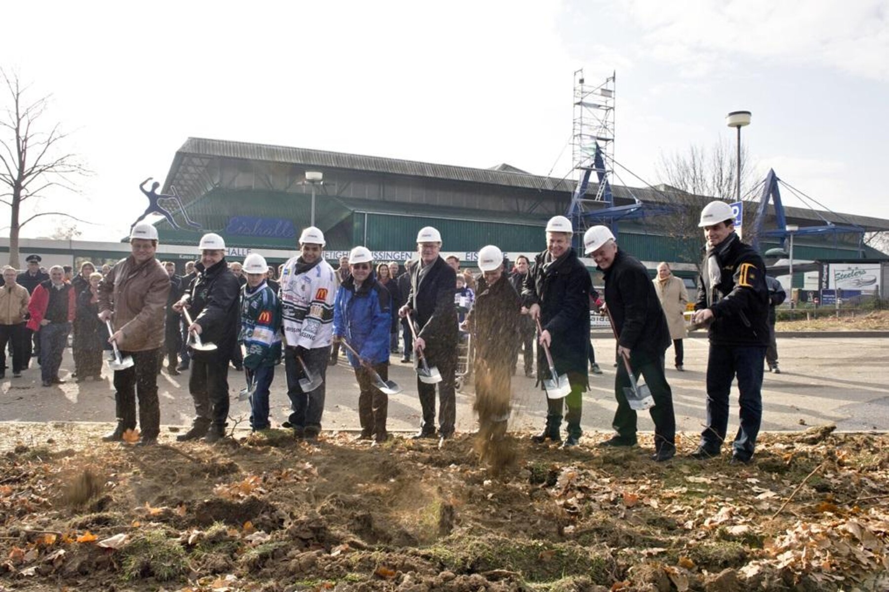 - Spatenstich zum Bau der Multifunktionshalle 17.11.2011 durch OB Kessing, dem Geschäftsführer der Stadtwerke Rainer Kübler, Planer und Architekten sowie geladenen Gästen