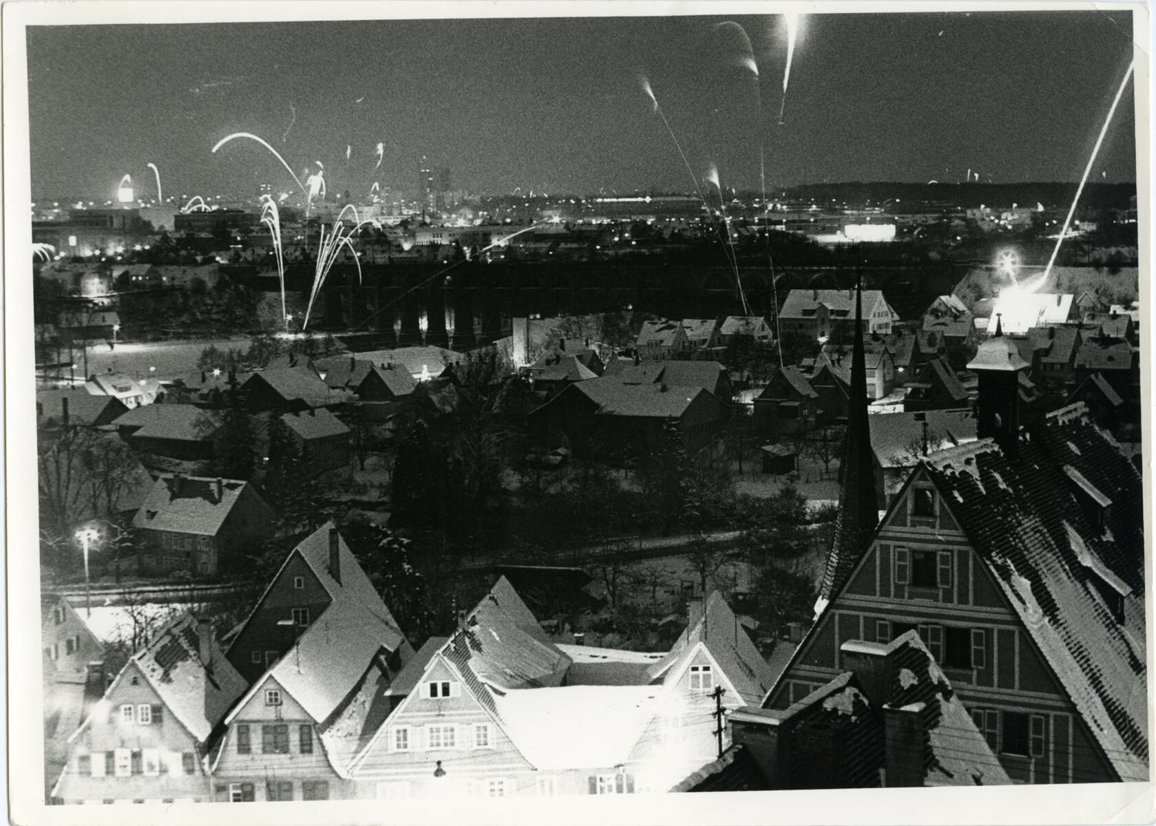 Das Silvesterfeuerwerk 1970 fotografierte Alfred Drossel.